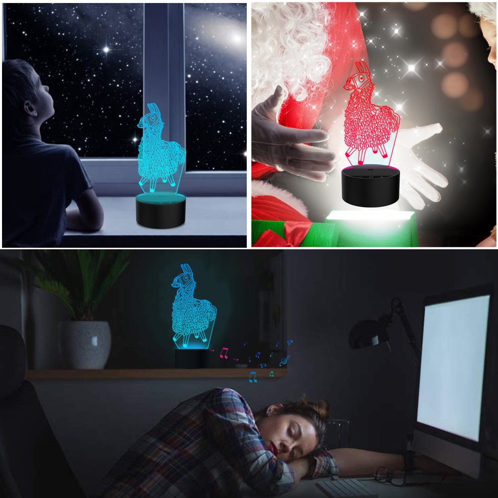 3D Illusion Lamp Alpaca LED Night Light with Bluetooth Speaker