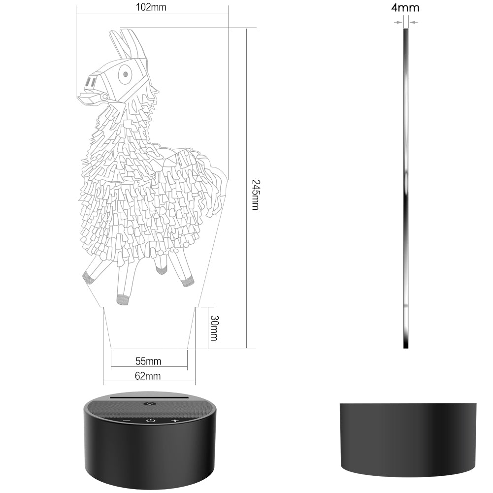 in actual. But it looks like a real Alpaca 3D in dark night.Unique lighting effects amazing optical visual illusion home decor lamp,3D mood Lamp can regulate the atmosphere in your room,makes your room more interesting.