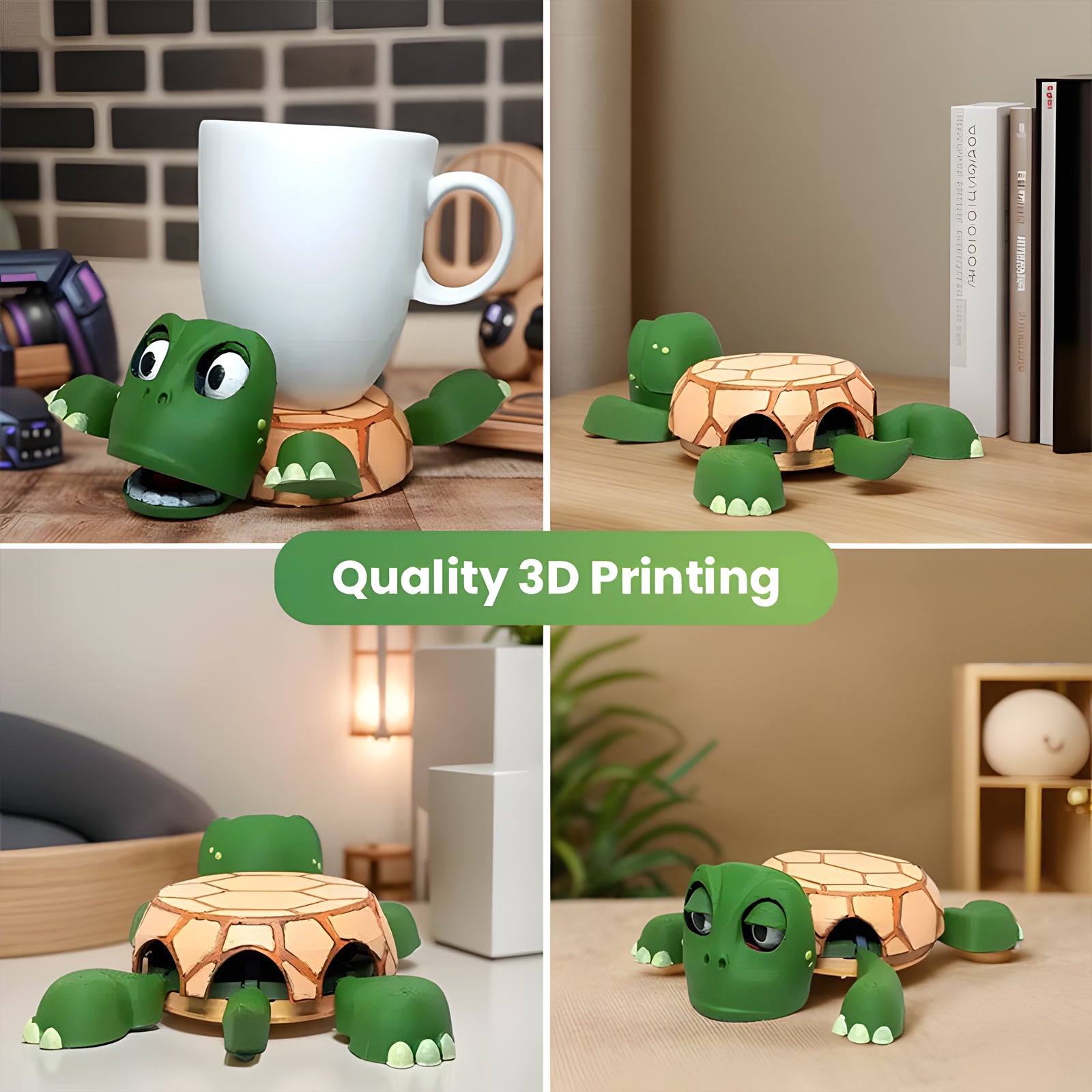 This isn't just a cup holder—it's a mood-boosting, conversation-starting, and downright hilarious addition to your space. Made with precision 3D printing, this turtle coaster springs to life when you place your drink on its back. Watch as its limbs, head, and tail lift, revealing a playful expression that's guaranteed to make you smile.