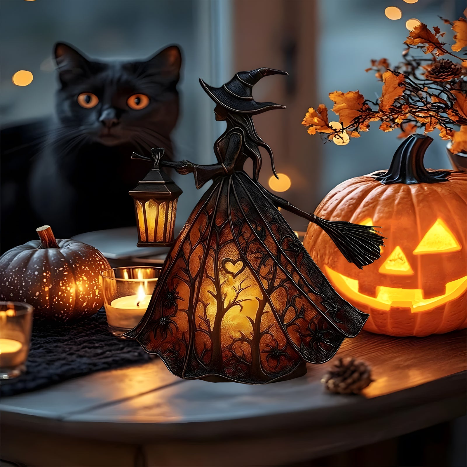 Enchanting Gothic Witch Lamp - Handcrafted Stained Glass Halloween Night Light for Spooky Indoor Home Decor, Shelf Mantels, and Gothic Accent Lighting