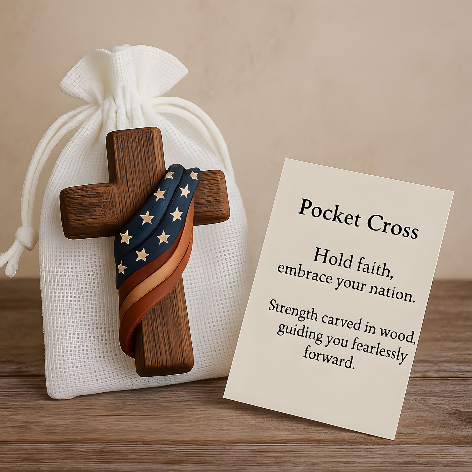 Handheld Wooden Prayer Cross for Anxiety Relief - Pocket Comfort Cross with Prayer Card, Inspirational Gifts for Women & Men, Religious Keepsake for Daily Devotion
